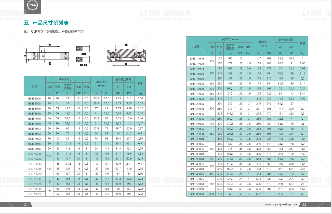 洛陽佰納BNE型交叉滾子軸承:外圈整體、內(nèi)圈分體由螺栓或鉚釘聯(lián)結為一體結構,外形尺寸與BNB系列相同,適合應用于要求