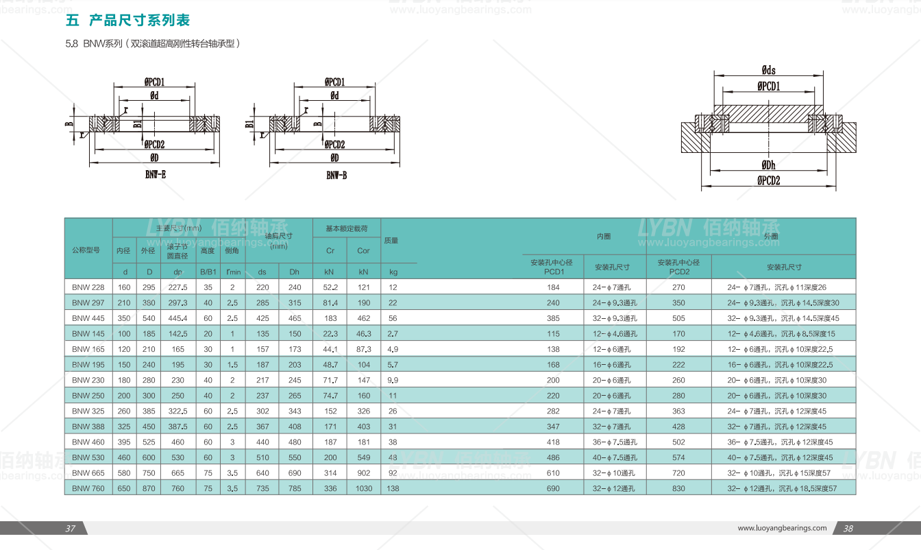 洛陽佰納BNW型交叉滾子軸承:內(nèi)圈整體或外圈整體型結構,此系列為大尺寸、大截面、雙滾道設計,內(nèi)圈和外圈都帶安裝孔,安