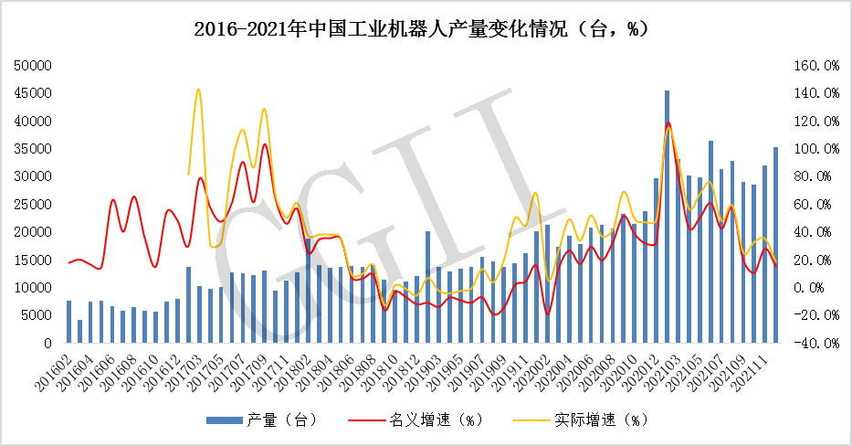 精密減速器市場景氣度與工業(yè)機器人市場正相關(guān),同時亦受到下游制造業(yè)景氣度的影響。 2021 年中國工業(yè)機器人呈“
