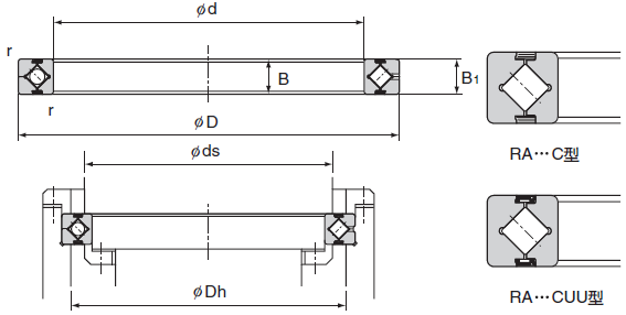 | 140 | RA 14008C | 0.19 | 140 | 156 | 8 | 0.5 | 143.5 | 150.5 | 8330 | 19100 | RA 14008C |