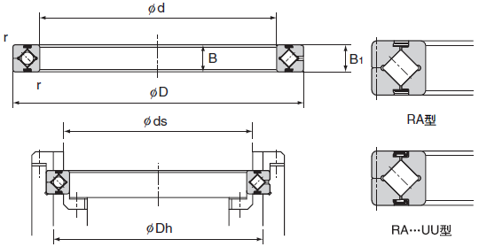 | 150 | RA 15008 | 0.2 | 150 | 166 | 8 | 0.5 | 153.5 | 160.5 | 8820 | 20600 | RA 15008UU |