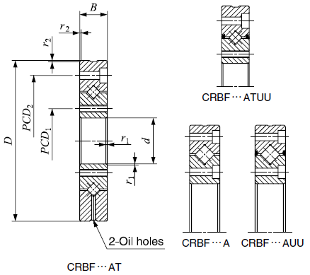 | 115 | CRBF 11528 AT | CRBFV 11528 AT UU | 6.81 | 115 | 240 | 28 | 1.5 | 139 | 12-M8貫通 | 217 | 12-φ9貫通,φ14沉孔深度13.5 | 162 | 198 | 84.3 | 138 |